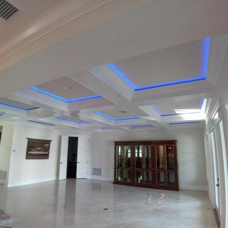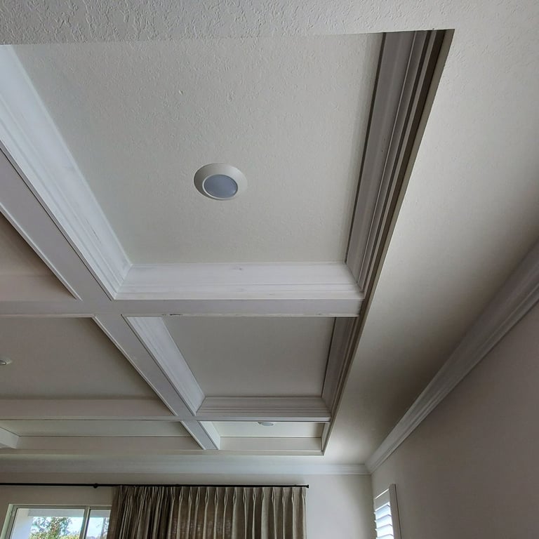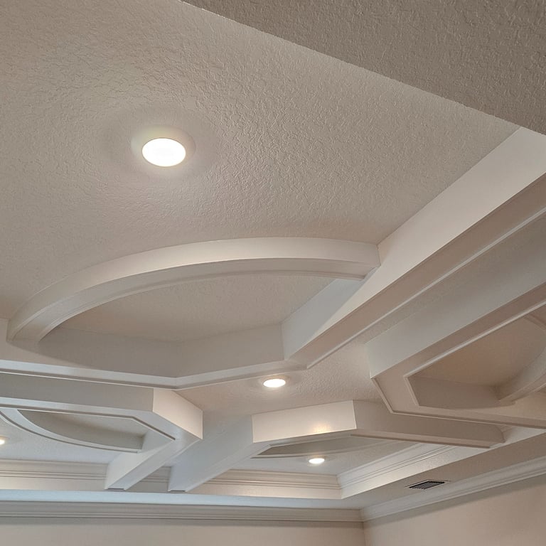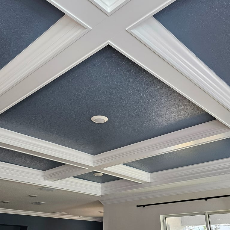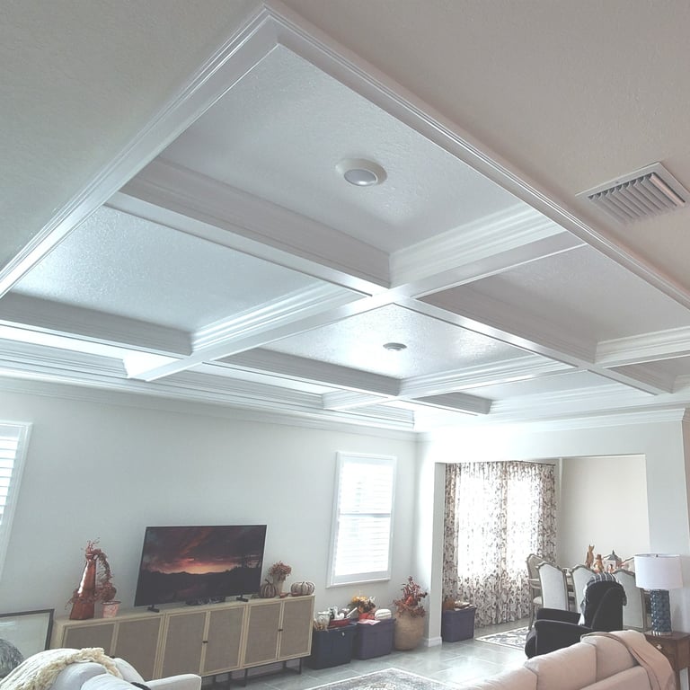 Turn any room into a comfortable space with an expert-designed coffered ceiling. We can help bring this masterpiece to life in your home. Call us for a free consultation.